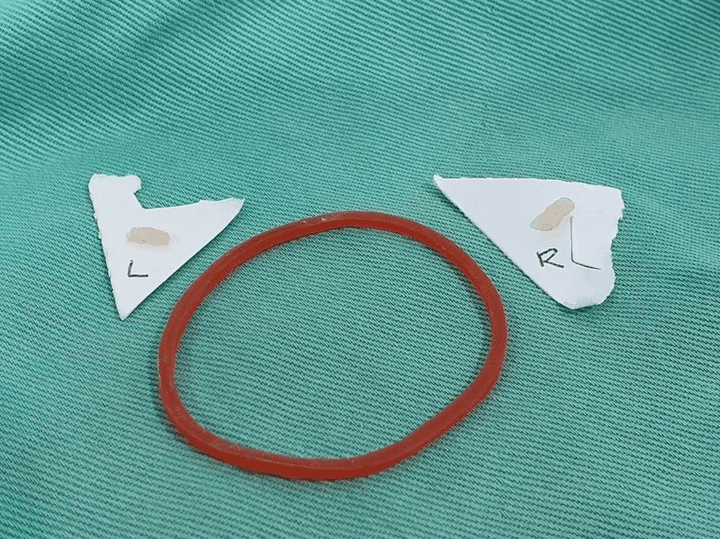 輸精管管徑僅如橡皮筋般細。圖為從進行結紮術男性身上截斷的左、右兩側輸精管。蘇信豪醫師提供 圖片來源 : 蘋果新聞網