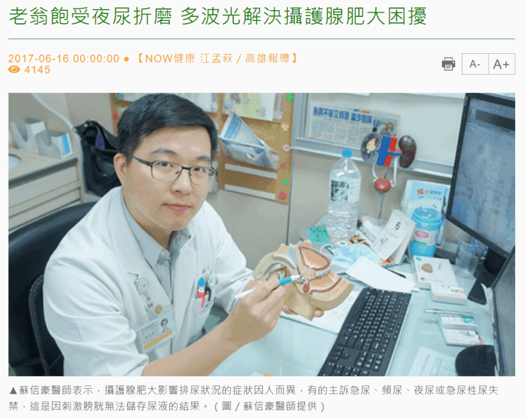 老翁飽受夜尿折磨 多波光解決攝護腺肥大困擾 2017-06-16