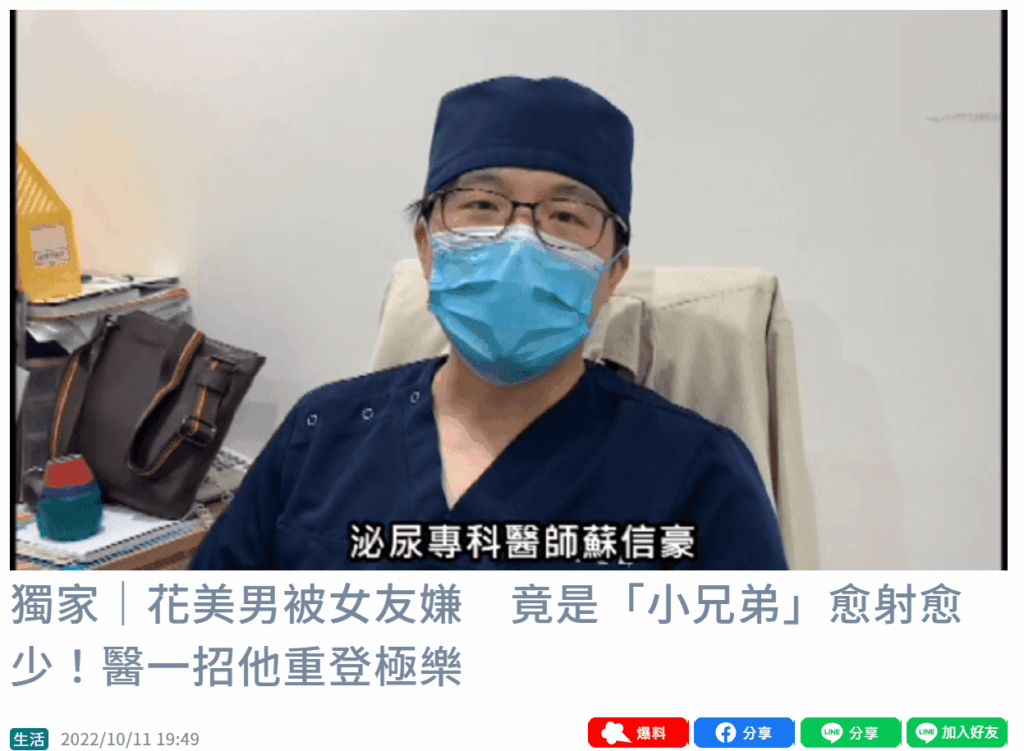 花美男被女友嫌 竟是「小兄弟」愈射愈少!醫一招他重登極樂 2022-10-11